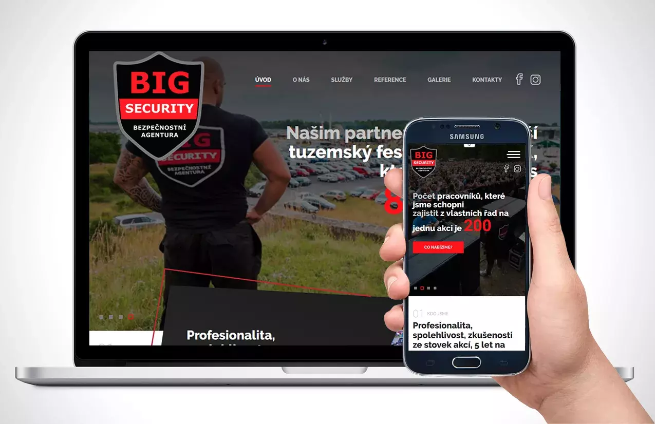 Klient BIG Security, jeden z největších hráčů na trhu bezpečnostních agentur. Stránky vytvořené na míru požadavkům klienta. Výsledkem je přehledný a unikátní design. Na první dobrou se může zdát, že je zde až příliš obrázků, vychny jsou však optimalizované a jejich vliv na rychlost načítání a u mobilních zařízení vliv na tok dat je minimální. Cílem byl prvotní wau efekt a oddělit se od běžných designů, na které uživatel běžně naráží.