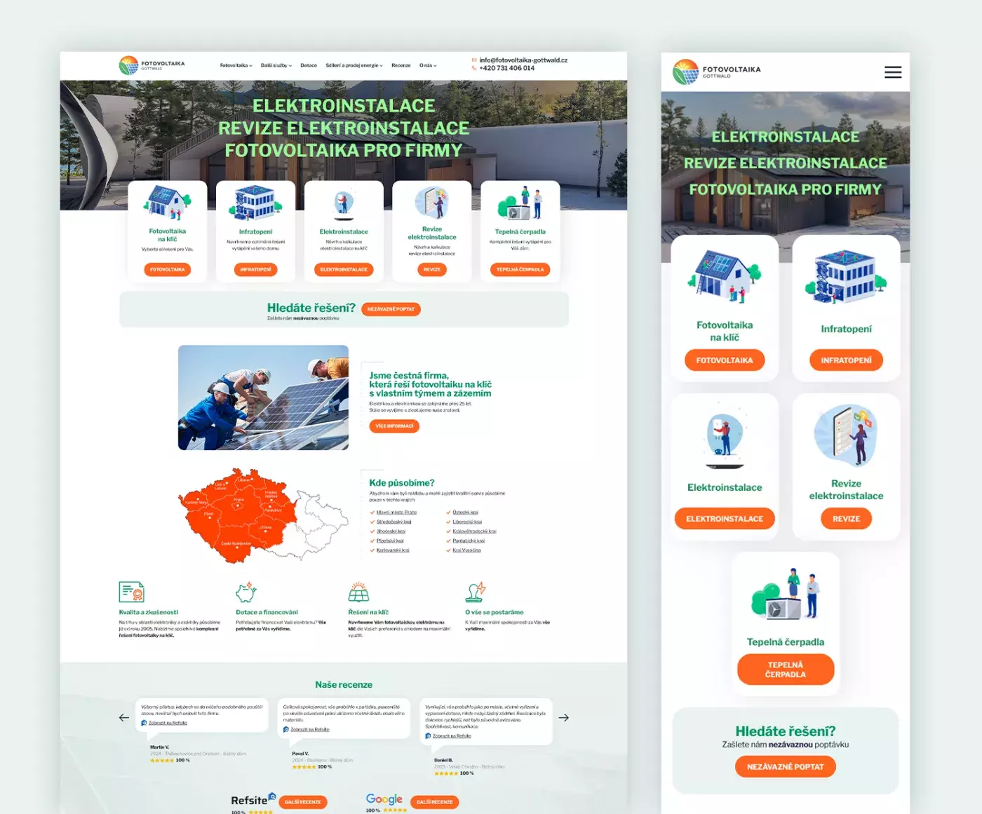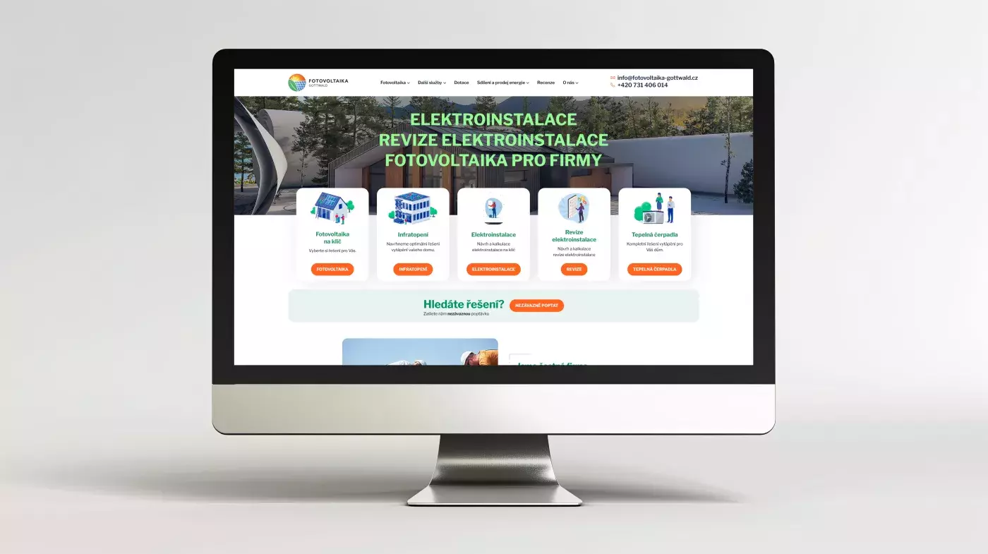 Pro Fotovoltaiku Gottwald jsme vytvořili moderní firemní web, který slouží k prezentaci jejich služeb v oblasti fotovoltaických systémů. Web je navržen tak, aby návštěvníkům poskytl jasné informace o dostupných službách, a umožnil jim snadno získat konkrétní nabídky a kalkulace.