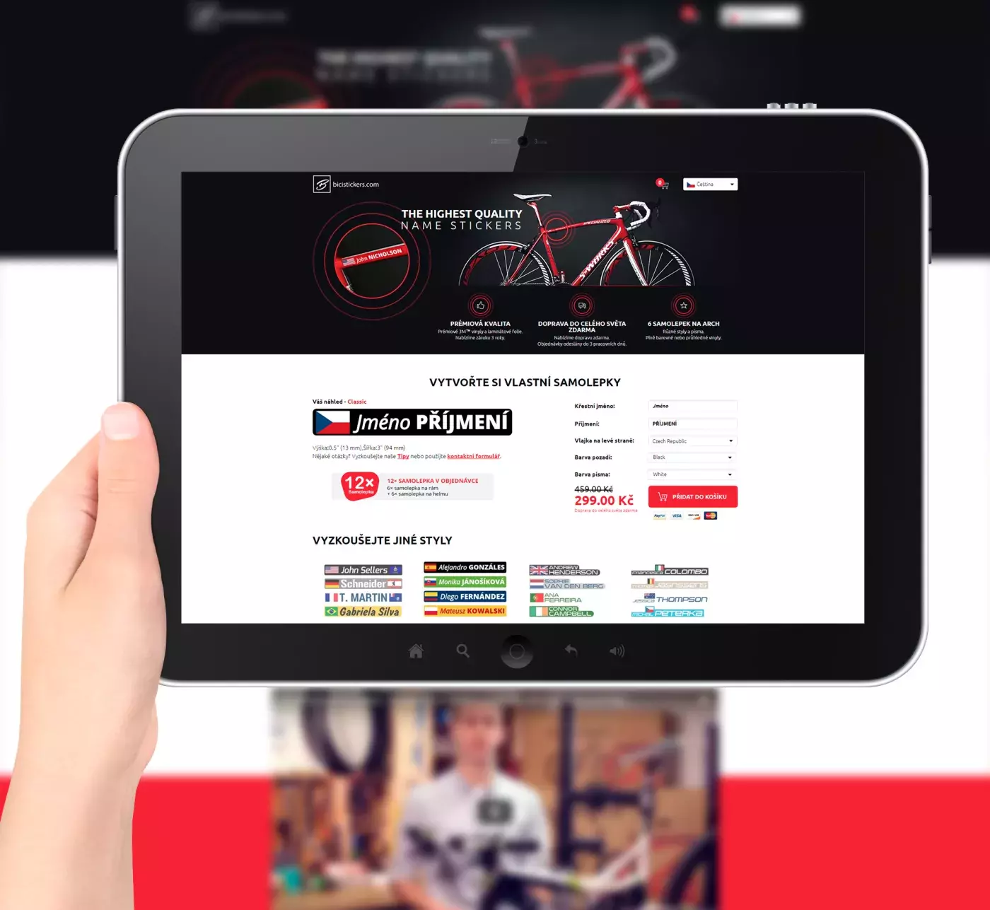 Tvorba unikátní aplikace na generování samolepek včetně podkladů pro tisk. Uživatel si může vytvořit vlastní samolepku na kolo, projde nákupním procesem a nálepka je hotová.