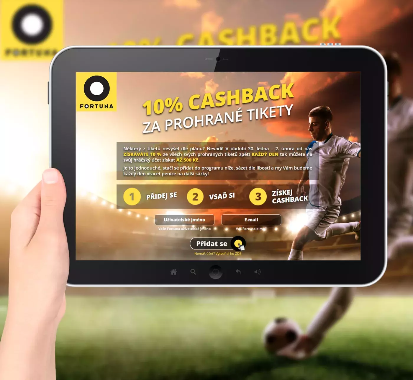 Microsite • Responsive webStránka s registrací vytvořená pro promo akci Cashback společnosti Fortuna. Samozřejmostí je pro nás responzivní design, který se přizpůsobí každému zařízení. Zobrazit web