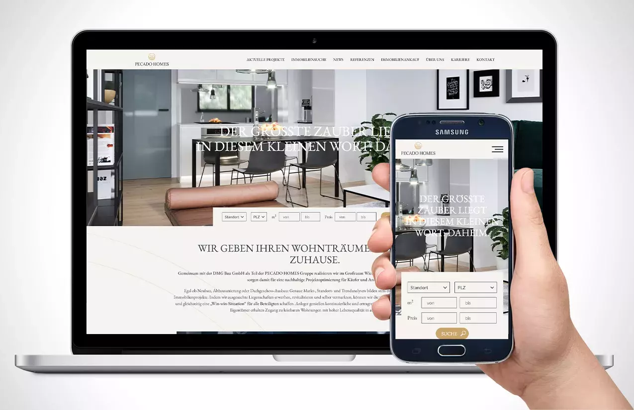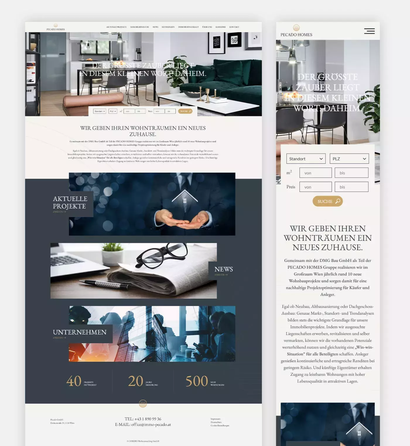 Tvorba webových stránek s nabídkou nemovitostí pro rakouského developera Pecado Home. Nabídka je plněna pomocí API z externího systému, to zajišťuje automatickou aktualizaci obsahu na straně projektů a objektů. Uživatel má tak k dispozici vždy to, co je aktuálně volné, za aktuální ceny. Správce tak nemusí téměř zasahovat do webových stránek, pouze přijímá objednávky.