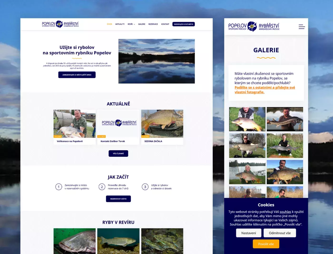 Systém prezentuje jak rybník, tak převážně řeší správu a obsazenost rezervací.