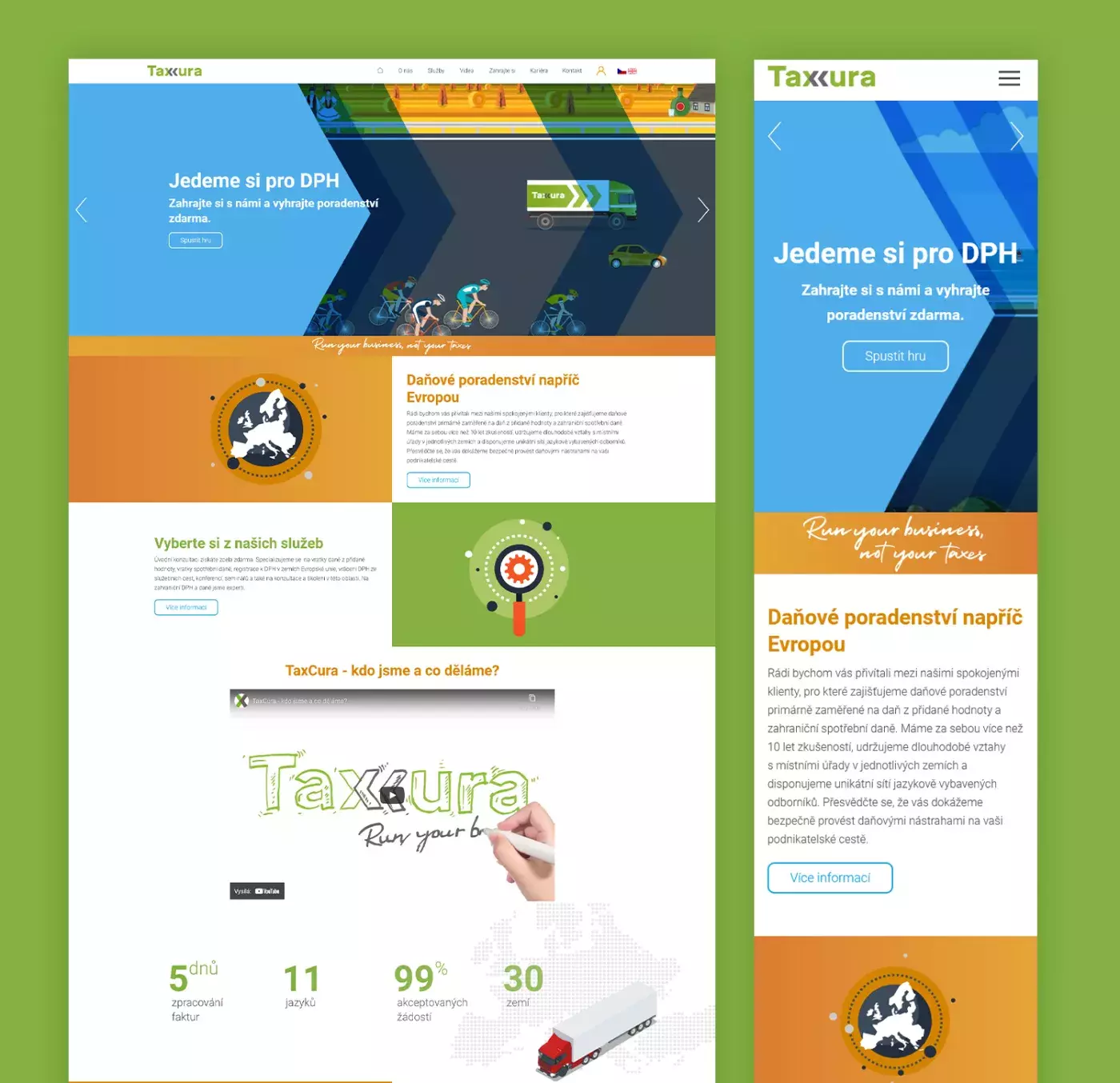 Webové stránky účetní společnosti Taxura. Velikým požadavkem klienta byla hravost. Web je velmi rozpohybovaný a obsahuje spousty nestandardních prvků, počínaje hrami, ve kterých si můžete vysoutěžit slevu.
