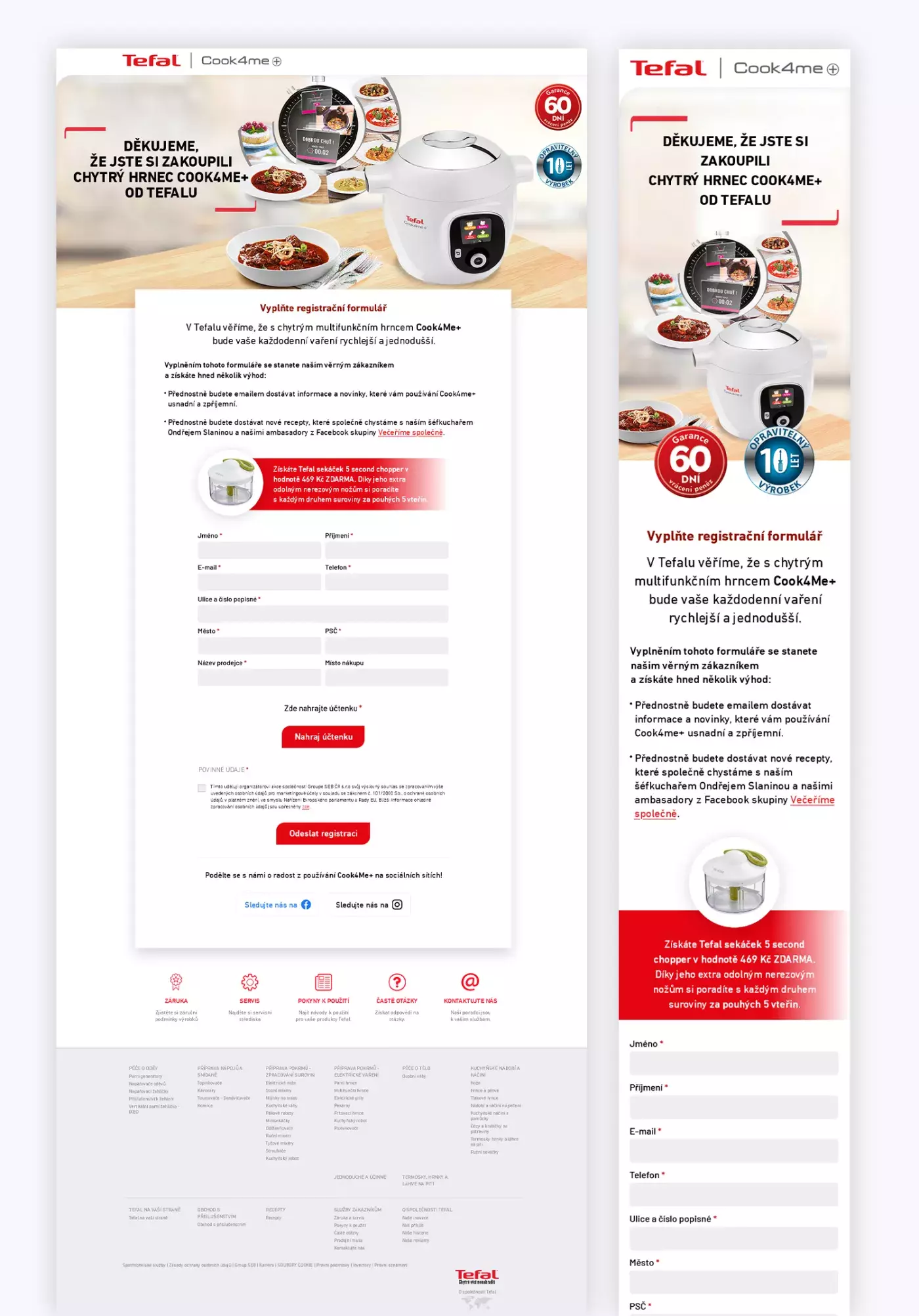 Benefitní program pro produkty Cook4me od Tefal. Aplikace je v provozu na území ČR, Slovensko, Maďarsko. Odchozí formulář přichází přímo do CRM klienta. Zobrazit web